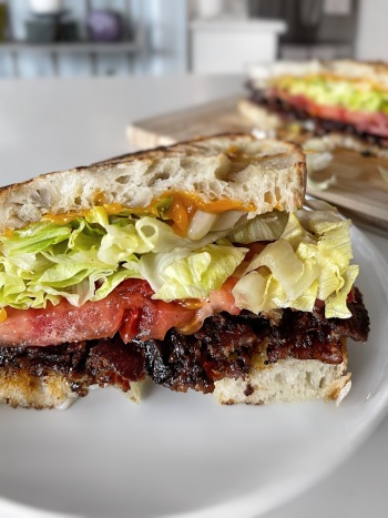 Cheesy BLT Sandwich with Spicy Candied Bacon